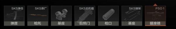 1、基础配件:SKS突击步枪的基础配件包括10发7.62×39毫米子弹的弹仓、SKS机瞄和原厂枪托。这些配件在人机对战中非常常见,是玩家开始游戏时的基本装备。