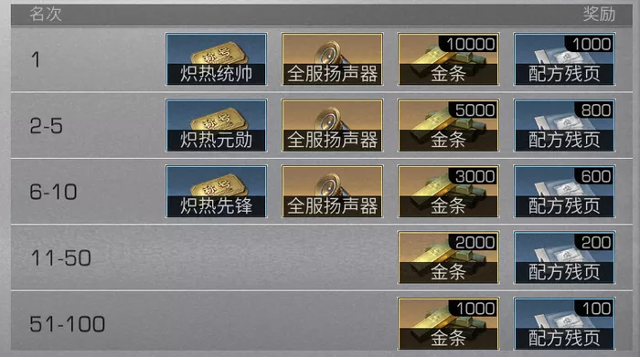 整个事件结束时总贡献第一的服务器将被全服通报,该服务器幸存者获得炽热勇士专属称号、技能点熟练度礼包。