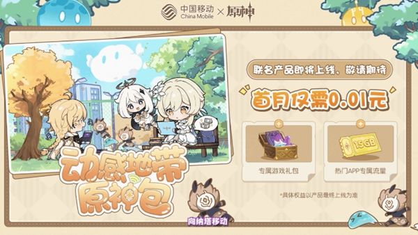 《原神》与中国移动的合作也即将上线,届时将推出全国流量包产品——动感地带原神包。这一联动不仅为玩家提供了更多流量福利,还进一步拓展了游戏与通信领域的合作。