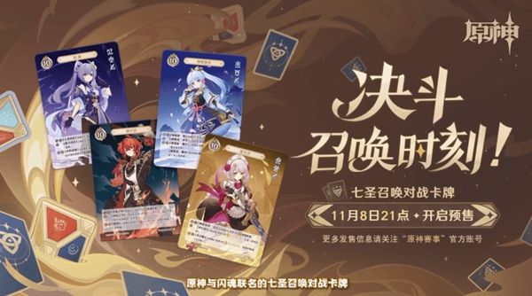 《原神》与闪魂合作的七圣召唤对战卡牌将于11月8日21点开启预售。这款卡牌周边将为玩家带来全新的对战体验,喜欢卡牌游戏的玩家不容错过。