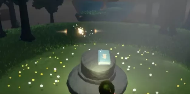 1、首先翻开图中的书,然后飞到下方标记点的位置。