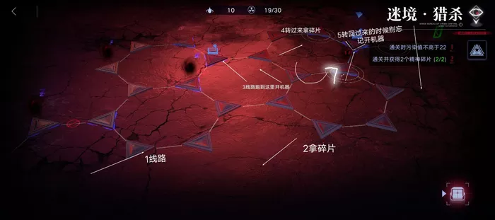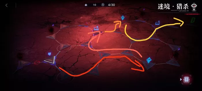 接下来沿着红线路线走到蓝色图标处触发屏障