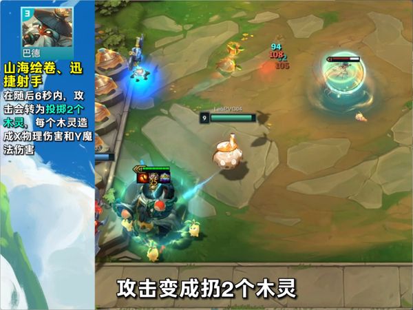1、技能:木灵木灵!巴德在接下来的6秒内,每次攻击都会发射出两个萝卜头,这些特殊的飞行道具能对敌人造成显著的物理伤害,极大地增强了巴德的输出能力。