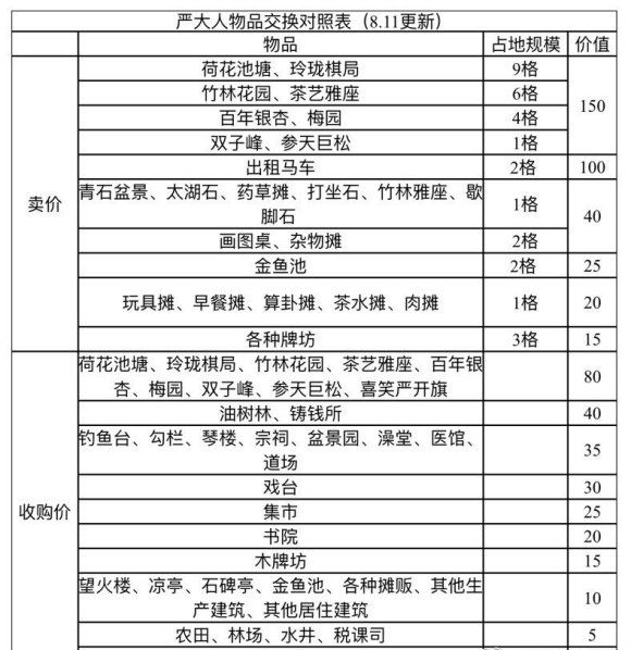 小技巧:江湖消息称,严大人有一套独特的价值交换体系。例如,告示牌在他眼中价值为1,而竹林花园价值为150。虽然告示牌价值较低,但若能凑够150个,严大人也会考虑兑换。