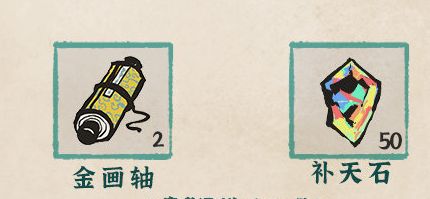 3、连续签到5天:可获得金画轴*2和补天石*50。
