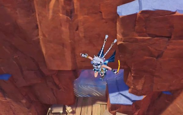 3、跳下后,将视角转向后方,即可看到祝圣之霜。
