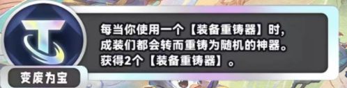 1、变废为宝海克斯特别适合那些在野怪战斗中频繁获得装备重铸器的玩家。每次使用装备重铸器时,现有的装备将会被重铸为随机的神器,这为玩家提供了极大的战术灵活性。