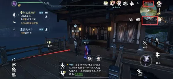 1、玩家首先前往谪仙岛,以后来到“744,523”坐标位置。