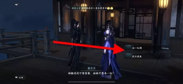 2、找到NPC聂引月对话,并选取“沽一坛酒”。