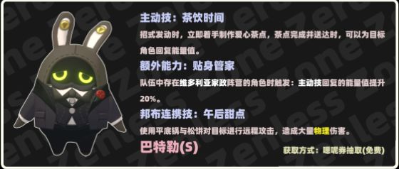 2、巴勒特:巴勒特邦布能够回复能量,增强艾莲的持续作战能力。当维多利亚家政成员在场时,还能获得额外的回能加成,进一步提升战斗效率。