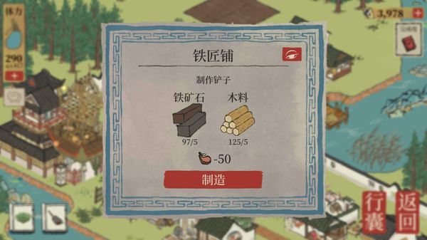 1、制作方法:铲子需要在铁匠铺进行制作,铁匠铺位于与王捕头对话的前面村子里。