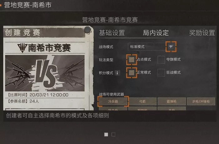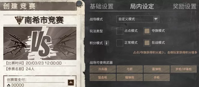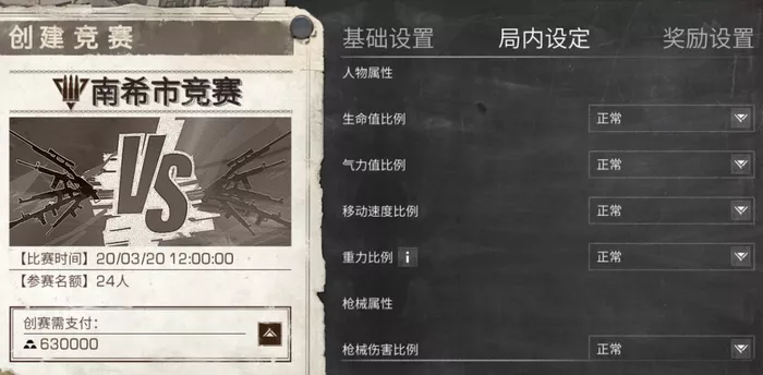 营地幸存者可源于自己的喜好自定义不一样类型的营地竞赛、设置参赛人数、参与权限、组队模式等内容。