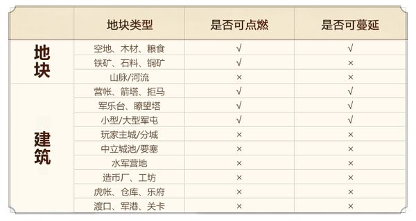 2、风向及蔓延规则:火焰在燃烧时会向周围地块蔓延,蔓延方向受风向影响,蔓延频率则受风力影响。火焰每蔓延一格,强度会下降一个等级,但如果蔓延到粮食或木材领地上,火焰强度将增强至烈火。风向每6小时变化一次,玩家需根据风向变化灵活调整策略。