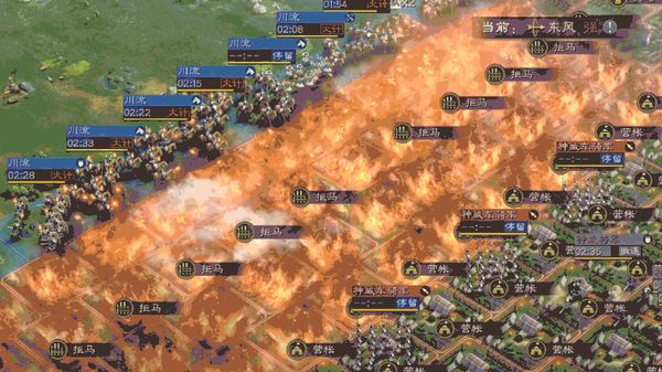 1、火计/灭火指令:玩家可以通过“火计”指令点燃地块,对敌方部队和建筑造成持续伤害。值得注意的是,藤甲兵、象兵、器械兵种无法执行火计,且主城、分城等部分地块无法被点燃。火焰强度分为煴火、炎火和烈火,不同强度的火焰对部队和建筑的伤害也有所不同。