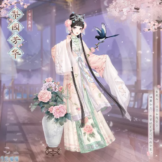 3、梨园芳华:内含特殊姿势上衣-梨园芳华、特殊姿势下装-良景佳韵、精美可移动摆件[天涯寄情]和[繁花如锦]。