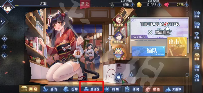 首先我们进去游戏,在主界面点击生活区。