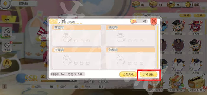 进去训练界面,点击开始训练,挑选须要训练的喵箱。