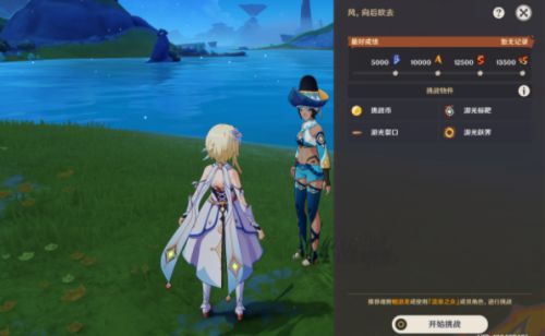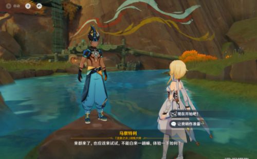 1、第一处挑战位于地面溪流畔,玩家可以通过旁边的传送点快速抵达。到达后,按照提示完成相关任务即可。