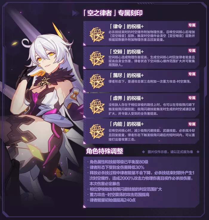 6.0版本更新后,空之律者将作为可选角色,加入到「往世乐土」的战斗中。