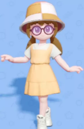 3、推荐三:连衣裙,这款一样是连衣裙,但是搭配套的是白色高帮鞋,并且还有黄白撞色的渔夫帽和紫色的圆框眼镜作为点缀。