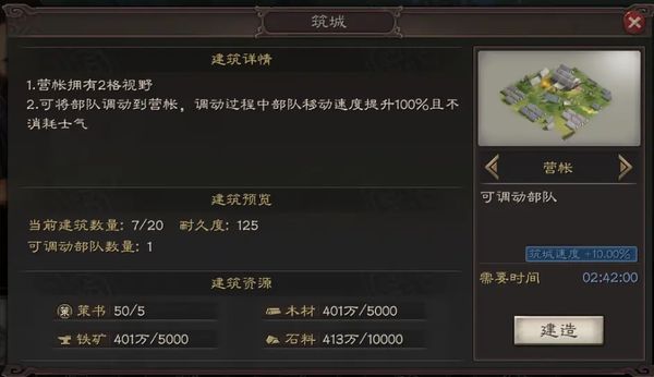 2. 筑城:包括箭塔、据马和营帐,其中营帐和箭塔每次消耗五个策书,据马消耗三个。营帐是游戏初期的重要战略资源,用于防守和支援。箭塔和据马则主要用于防守,对推进方形成阻碍。