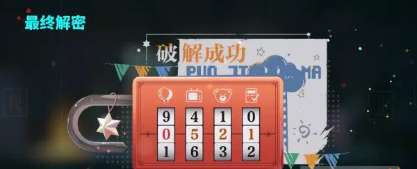 6、获取四张纸条后可知密码为0521,破解后可以得到20彩钻奖励。