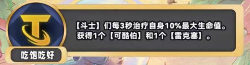 1、【吃饱吃好】是特定阵容的专属海克斯,主要适用于斗士阵容。