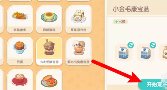4、期间须要注意点击出现的勺子图标,烹饪结束后点击拾取菜品即可拿到小金毛康宝蓝。