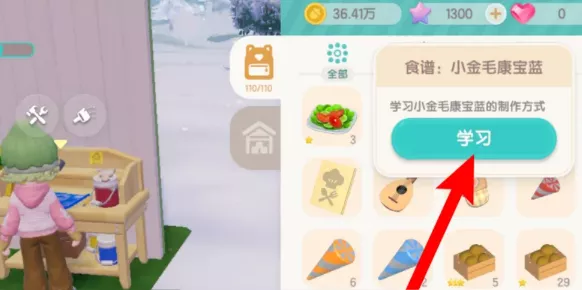 2、紧接着挑选【小金毛康宝蓝】食谱,并点击【学习】按钮。