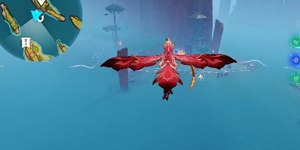 3、传送至花羽会上方,使用飞龙技能前往热气球位置。