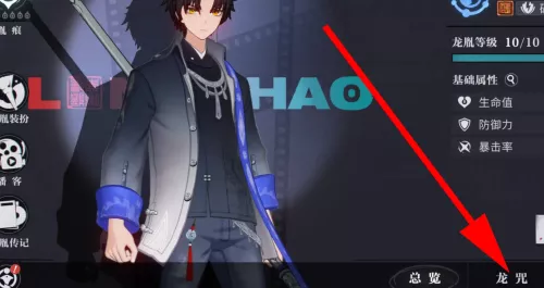 1、启动游戏后,在起始页面向右上角寻找并点击龙胤标志。