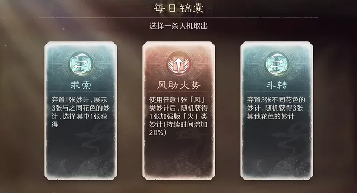 2、每日锦囊系统:玩家可以使用 “每日锦囊” 来调整手牌的内容。