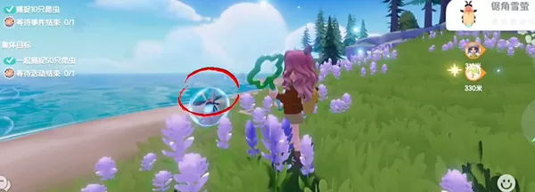 3、触发任务后有1分钟时间指引去到小岛上,会提示捕虫开始。