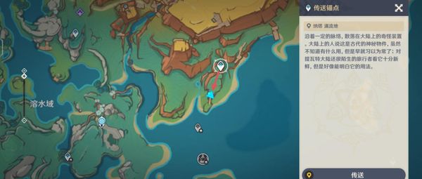 1、首先,在地图上找到涌流地的传送点,使用传送功能快速到达该位置。
