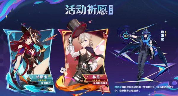 3、第一期活动祈愿:巡宇翦定·恰斯卡、惑光幻戏·林尼。这两位角色在活动祈愿中登场,提供了全新的战斗体验。