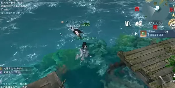 2、之后在“858,853”水里的位置拿到宝箱。