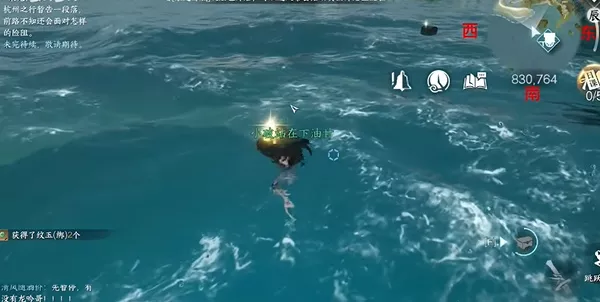 3、继而往“830,764”位置过去,在水下有宝箱。