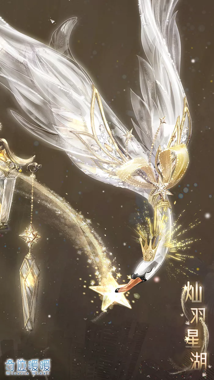 【灿羽星湖】含全新妆容“流辉落影”,精美可移动摆件“雪羽长吟”、“灿星之流”、“心海微澜”、“星辉照影”,达成套装成就可领取特殊姿势部件。