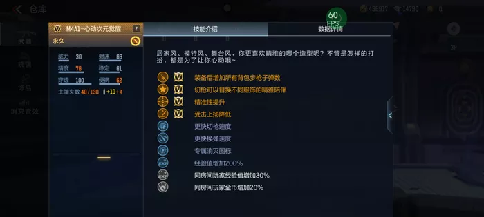 装备M4A1-心动次元觉醒后能够增加所有背包步枪子弹数。