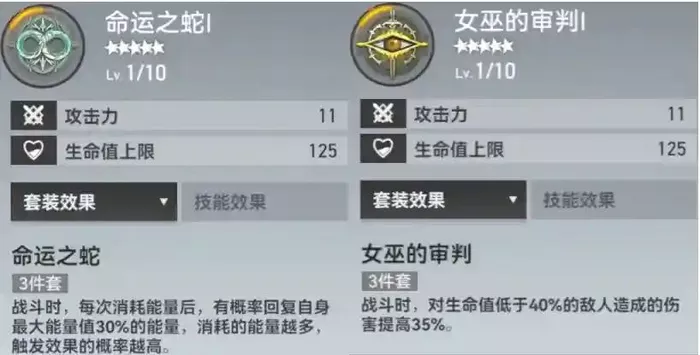 【女巫的审判】平均14%的增伤,增伤极为稳定(可换成狮鹫之傲等通用类刻印),【命运之蛇】的回能能够有效缓解能量不够的问题(近乎不可取代)。