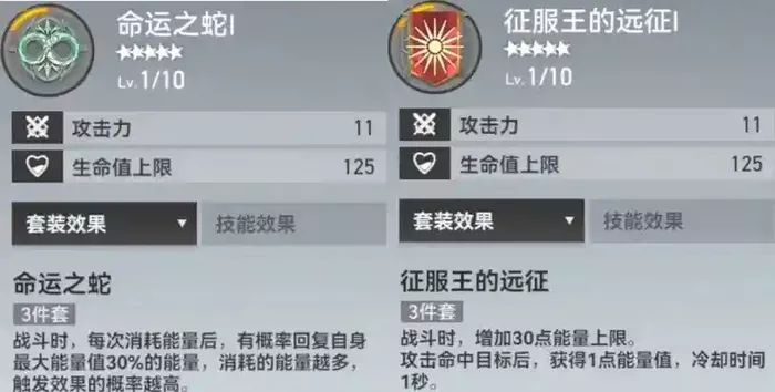 放弃增伤刻印挑选双能量刻印(增伤刻印的十几个百分比的增伤在200%技伤面前显得苍白无力),【征服王的远征】的增加最大能量上限配合【命运之蛇】的套装效果,极大程度上缓解了能量困乏的情况(运气到位再配合回能猫勉强能够完成循环所需能量的周转)。