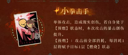 2、神秘术-小拳击手:能够对敌人打出创伤,并且处于燃烧状态下的敌人伤害还会增加。