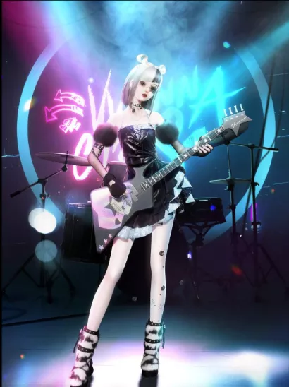 #手持 点缀星型主题、经过特殊设计的吉他,将弹奏出震撼世界的旋律。