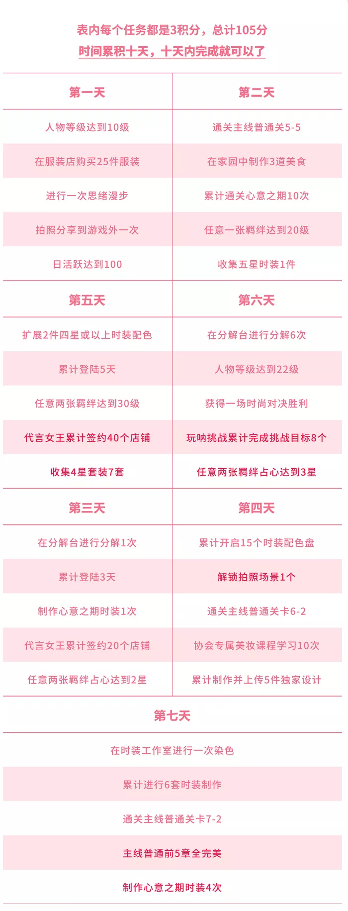七日任务清单