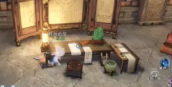 5、打败后,中间书桌上有一份崭新的信,点击阅读,即可取得短杆毛笔信物。
