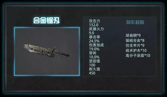 以上就是《明日之后》合金锯刃制作材料属性一览攻略的攻略内容,希望能助你轻松通关!更多精彩攻略,请继续关注本站!