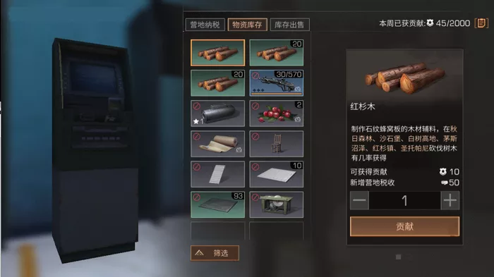 幸存者可以在小地图上查看营地金库的位置,当营地市民主动在营地金库贡献自己的物资时,可以取得营地贡献值。