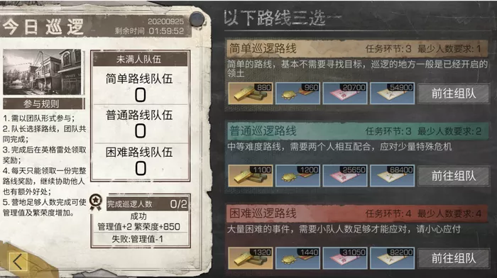 由于任务地点跨度较大,幸存者可以活用【快捷传送】提高移动效率,完成巡逻任务后幸存者可以前往英格雷处领取奖励,每完成一个巡逻任务可以取得对应的营地贡献值且提升营地繁荣度,完成所有任务可取得金条奖励。当营地全营完成巡逻人数到达10人,次日的营地管理值会增加1点。