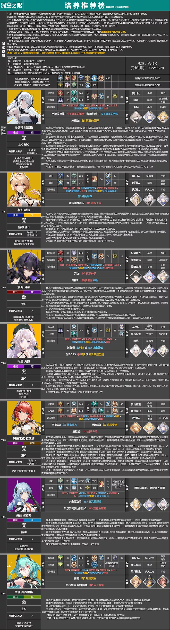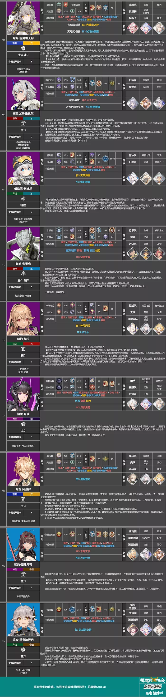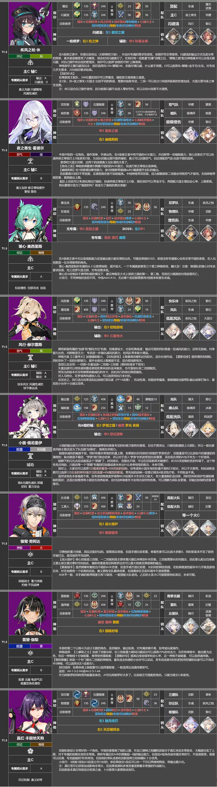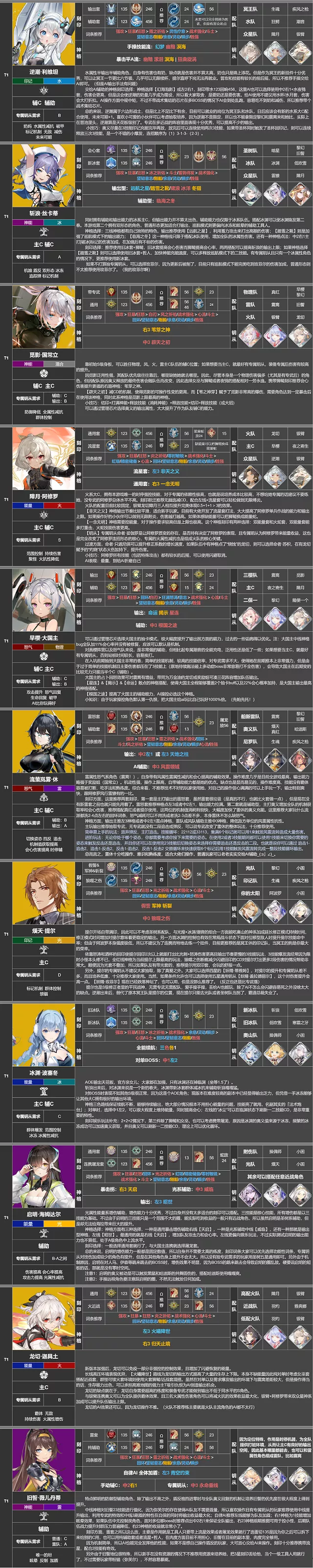 T1.5:推荐培养,一般为允许到了T1的A级角色,缺点为培养成本高或技能倍率低。