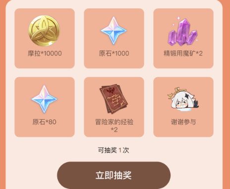 2、完成指定任务后,可参与5.0版本福利抽奖,每位玩家最多有5次抽奖机会,有机会抽取1000原石等奖励。